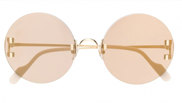 Time to amp up your accessory game. Crafted with a rimless design and a round frame, these gold-tone and ivory C Décor sunglasses from Cartier Eyewear are the perfect piece to give your looks a bold twist. Eyes and style protected. Featuring tinted lenses, 100% UV protection, a logo decal on the lens, nose pads and straight arms with curved tips. This item comes with a protective case.